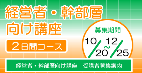 【1/22、2/12】経営者・幹部層向け講座受講者募集(2日間コース)