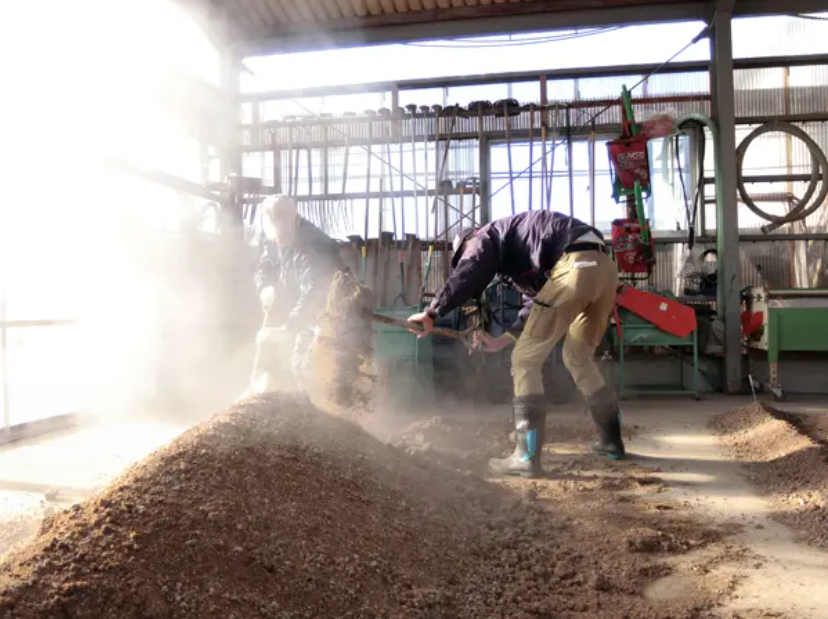 近年、この技術を生かして地域で生じるさまざまな廃棄物を堆肥化し、資源を循環させる取り組みも行っています。例えば、地元の菓子製造販売企業では、製造過程で生じた食品由来の有機汚泥を堆肥に変え、新店舗エリアの土づくりや種生姜の植え付けなどに貢献しました。